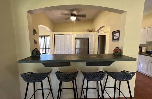 The house has large louvered glass screened windows and doors throughout to enjoy the Caribbean breeze as well as ceiling fans in all rooms. All 5 bedrooms are air conditioned. The kitchens are fully equipped for preparing meals and there are many good restaurants a short distance away for your dining pleasure. Furnishings are all high quality, lovely high count cotton linens and big fluffy towels. The partially shaded sod yard is fully fenced and the property is gated and very private. 'The Lone Palm' offers a total of 5 bedrooms, broken up into two large apartments. There is a 2 bedroom unit on the second floor and a 3 bedroom unit on the first floor... the perfect combination for a group or extended family getaway! Both rental units offer covered terraces, BBQ’s, wifi, smart TV, and private, gated sod lawn grounds. All bedrooms are air conditioned and 4 of them have queen sized beds, 1 bedroom has a twin over full size bunk bed. There is an amazing outdoor shower (and bathroom), “The Little Loo”, which is a favorite of all who try it.
