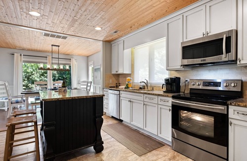 There is no extra fee to heat the spa only. You will love the open living room, dining room and kitchen. The kitchen is fully stocked with stainless steel appliances with granite counter tops that allow you to whip up some wonderful beach cuisine. Enjoy the great collection of kitchen appliances including Keurig coffee maker, mixer, blender, slow cookers in addition to white dishes, heavy flatware, cookware, baking pans, glasses, and more.