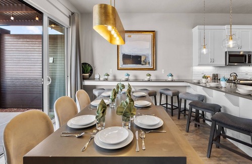 This expertly designed 5-Bedroom 5.5-Bathroom home can comfortably sleep 21 people! With 3 King suites, and 2 bunk rooms, there is sure to be room for everyone! In the first bunk room there are 2 triple-tier twin bunks (6 beds total), while the second bunk room hosts a Triple Tiered Twin Bunk Bed that can sleep 9 people! Enjoy the gorgeous desert scenery from the firepit, outdoor table, or even the second firepit on the balcony upstairs! Spend your days exploring and come home to a relaxing pool with a built in hot tub. No matter what you enjoy, Escape to Paradise at Ocotillo Springs is sure to have something for you!