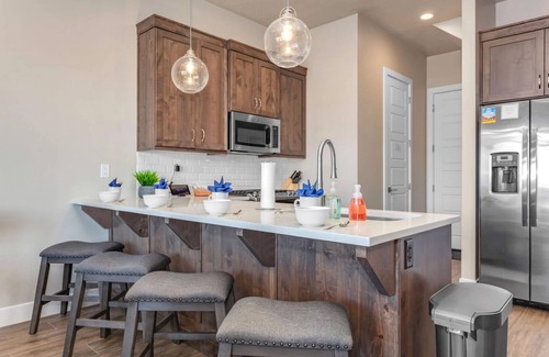 This elegant 3-Bedroom 3.5-Bathroom Home can comfortably sleep 9 people, or with the use of a pull-out couch and two sleeping pads, fit as many as 12 people for the ultimate southern Utah getaway! The first bedroom hosts a King bed, as well as a smart TV mounted on the wall and an ensuite bathroom. Next, another King bedroom connects to an ensuite bathroom and has a smart TV as well! The bunk room features a triple-tier twin bunk bed as well as a full bed, the perfect place for both kids and adults alike! With gaming systems, a ping pong table, and a spacious swimmer-spa, Ocotillo Springs 63 is sure to be a favorite vacation destination for years to come!