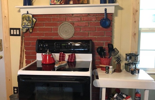 Cottage by the Creek is an original 1930’s renovated farmhouse on Walden's Creek with our back porch only feet from it. The pictures are accurate in scale. The roads are flat and easy particularly in winter - no getting snowed in! It is private, peaceful and plenty of wildlife comes by early in the morning for a drink. The ducks come twice a day like clockwork. If you are up early, you may see the turkey family come by or "Granddaddy Long Legs", our resident blue heron. No matter the time of day, the birds are everywhere and we have feeders out for them for you to enjoy bird watching!