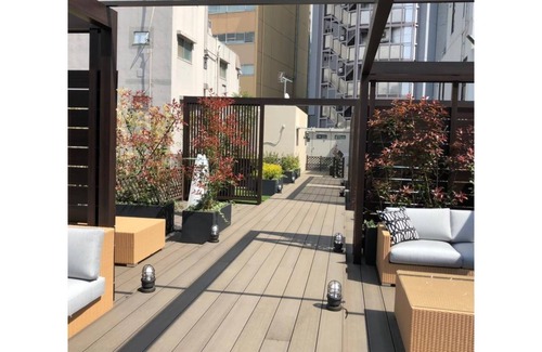 The open rooftop is a rare rooftop garden among surrounding hotels where you can look up at the urban sky of Roppongi Guests are free to use it