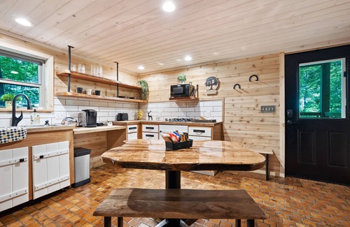 Enjoy a morning hike on our mile long private hiking trail that will take you across a clear mountain stream, into the canopies of the mountain laurels and through a rock garden boulder field. Take a dip in the hot tub to relax after a long hike.