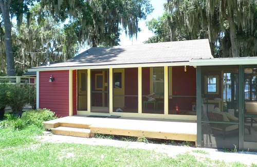 Charming Lake Front recently upgraded old Florida cottage with a spectacular redesigned dock. Sandy white beach next to cypress and magnolias. Launch your boat or canoe for excursions on 6,000 acres Santa Fe Lake. Or just sit at the end of the dock for breathtaking sunsets.