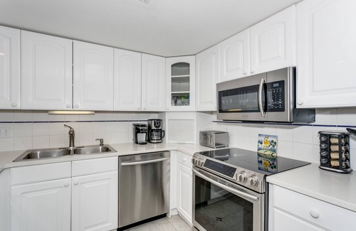After a memorable day at the beach, relax with an icy cold beverage on one of the two balconies. Enjoy the sound of waves crashing on the shore while reminiscing about your day at the beach. The spacious kitchen is fully equipped and opens to the living room with a 65-inch flat-panel television, comfortable furniture, and that amazing view. The main floor also has a half bath. This unit sleeps 6 people.