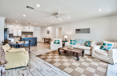 If you fish, it’s 3.2 Miles from the Destin Marina. It’s quirky and quiet and close to fishing and fun. FREE snorkeling is a quick beach walk to the jetties less than a mile away!