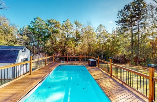 A true little piece of Texas, this Oakhurst vacation rental sits on 1 acre of land - enjoy a fenced sundeck with a private pool and a firepit (firewood provided!). Spend relaxing days making a splash and exploring the surrounding area.