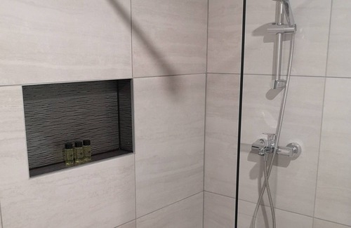 The one bedroom apartment with balcony is air conditioned and has central heating for the comfort of our guests during all seasons. The kitchen is equipped with an oven, stove and coffee maker as well as water kettle with all utensils provided for guests to make their own meals. The living room has a couch for lounging and a flat screen TV to dive into some entertainment. The private bathroom has a walk in shower, toilet, sink, mirror with soap, shampoo and toilet paper provided.