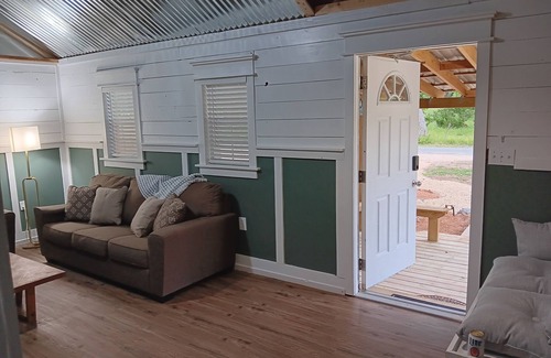 Enjoy the communal fire pit w/ grill, cornhole and tetherball. Watch the the Axis and WhiteTail deer from your front porch. Help yourself to freshly laid eggs from the chicken coop or grab some home grown veggies from the garden. You and your family can rest easy within the fully fenced property and security system. Suite Sheds is a local, family owned business. We look forward to hosting you.