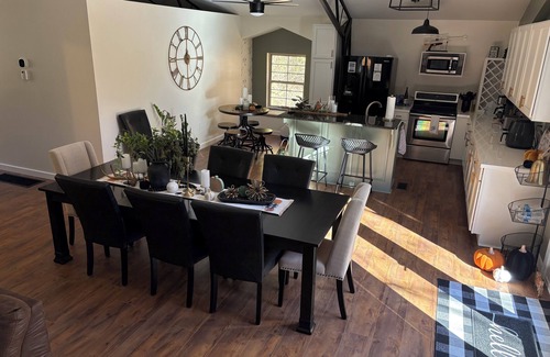 Nestled in Warsaw, this delightful barn boasts 4 marvelous bedrooms, including 1 king bed, 3 queen beds, and 1 full bed. With 3 adorable bathrooms equipped with hair dryers and showers, guests will feel right at home. Kickback, relax, and enjoy everything Warsaw and our barn has to offer. A recreational room that provides tons of fun for the whole family! Outdoor fire pit and swing and hiking trails.