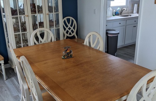 One flight up, this level boasts a comfortable beach-themed living room. Here you can either sit outside on the balcony, or rest indoors on the cozy chairs and sofas. This level also houses a large, windowed kitchen with stainless-steel appliances, including a full-size ice-making fridge, range, microwave and dishwasher. You'll find a wide variety of cookware, dishware and utensils. Two coffee makers (drip and Keurig) help you get caffeinated in the morning. The tucked away Queen bedroom with adjacent full-size bathroom is also located on this level.
