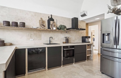 As you settle into this 4-bedroom, 2.5-bathroom rental, you'll find a fireplace and air conditioning. Bathroom amenities include towels, toilet paper, and soap. The kitchen is equipped with an oven, a stovetop, and a refrigerator, as well as a coffee maker, an electric kettle, and an ice maker. And thanks to the washer and dryer, you'll even be able to travel light.