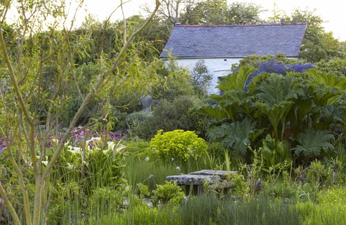 Set under the Preseli Hills, Y Bwthyn is a beautifully converted old stone and slate-roofed barn situated well off the road in a tranquil countryside setting. Numerous tiny windows frame glimpses of the 6-acre garden in which it is set – a garden which is so lovely it has been featured in magazines and on television. Inside, there is a wood burning stove and a counter-weighted stair to access the sleeping loft, and the cottage is filled with books and paintings. There isn’t a television so you can enjoy a few days being blissfully disconnected from the stresses and strains of the rest of the world. All around you wildlife, historic monuments, standing stones and cliff-top walks abound.