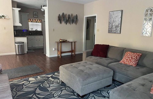 Family room downstairs with large SMART TV and sectional. Every bedroom has it's own Smart TV.
