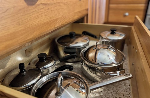 There's a gas grill and extra propane tanks in the garage for outdoor cooking and the large gourmet kitchen is fully outfitted, except for food. We have a large fully equipped laundry room as well. Many guests say the kitchen and house are the best equipped vacation rentals they've ever stayed in.