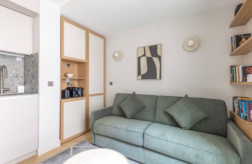 This beautiful unit with balcony is located in the center of Paris, between the Opera district and Madeleine. Whether it's for a business trip or a visit to our beautiful capital, we offer you the chance to live like a Parisian during your stay, while enjoying the services of a 5-star residence.