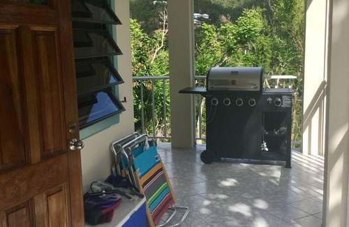 Casa Tre Fiori's Orchid is a newly remodeled one bedroom apartment with a large porch overlooking the lovely and peaceful garden. Enjoy the serenity of St John. Walk to some of the National Park hiking trails. Short drive to town and to the National Park beaches. Fish Bay is adjacent to the National Park on the south shore of the St John.