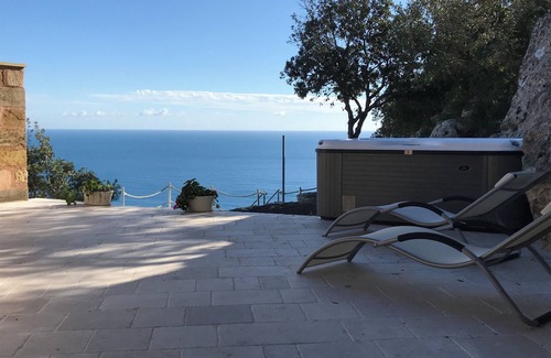 A superb terrace entirely in local stone overlooks the sea, offering the opportunity to enjoy an enchanting panoramic view of the sea and to experience pleasant moments in absolute tranquility.