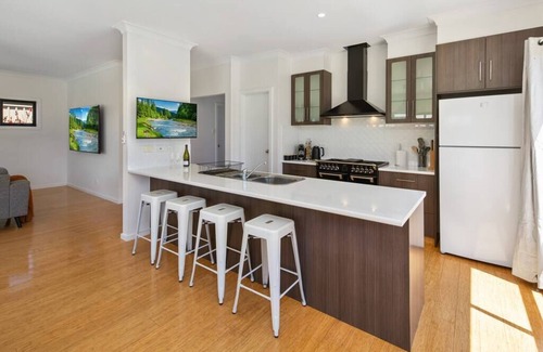 Oriana Grande is the ultimate family and group getaway, offering space, comfort, and fun. The huge backyard features kids’ play equipment and plenty of lawn space for games, while a kids’ retreat with bunks, toys, and TV, and a hidden under stairs cubby adds another fun touch. Relax with backyard outdoor dining and a gas BBQ, or unwind on the front balcony with stunning coastline views. Spacious and stylish, the home is close to beaches and wineries, making it perfect for relaxing or adventure!