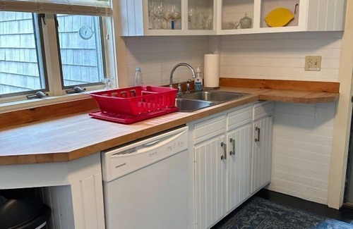 As you enter the Orr's Island Cottage, you walk through a little "work room" through the entrance into the kitchen. You then walk through to the dining area, which is open to the living room area~ the first bedroom has a day bed, the second presents 2 twin beds, and the last bedroom features a king size bed. You will have slight ocean views from the kitchen, master bedroom, as well as the large deck. You are super close to the ocean, and will love the salty smell of the air ! The full bathroom offers a stand up shower~ The cottage does now has 2 heat pump splits, which both provide heat and air conditioning. One is located in the Living Area, the other in the "master" bedroom, with the king size bed.