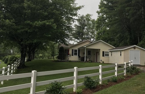 Beautiful house on private acre lot with beautiful views and serenity. All freshly painted, new furniture throughout, new tile, hardwood floors, Fresh linens in beds, which include one queen and one king size. Cookware in kitchen for your use. Shatley springs 20 minutes for home. Thistle Winery 3 minute drive. West Jefferson 15 minute drive. New River State Park 7 minute drive. Freebornes and Stations Inn1 1/2 mile drive. Blue Ridge Parkway 1 1/2 mile drive. IF YOU HAVE A PET.. I MUST APPROVE BEFORE RENTING