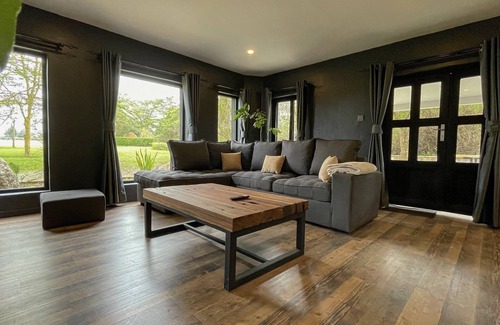 The lounge area offers the perfect place to unwind in front of Netflix with your loved ones, overlooking the greenery through the beautifully large windows.
