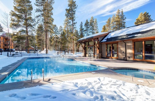 Outdoor Pool! Walk to downtown Breckenridge & ski lifts! Private balcony, garage | Condo in Breckenridge