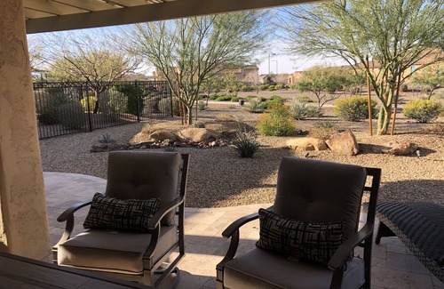 Beautiful Fully Furnished 2018 Arizona Home 55+ Community. Nothing like watching an Arizona Sunset in your private yard along with outdoor TV and Firepit. Outstanding Troon Golf Course with Restaurants and Bar.