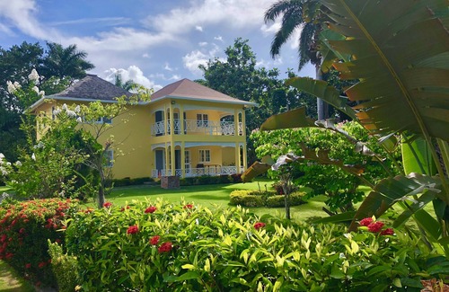 Villa "Over the Moon" at Morning Glory Villas which occupies 1.5 acres of beautifully manicured tropical garden is just a stroll (2 minute) from the beautiful private Mammee Bay beach (free access) with its powdery soft sand and beach club & restaurant "Bamboo Blu"