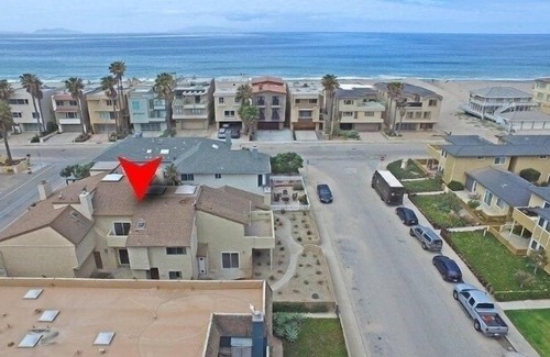Adorable, professionally decorated beach house steps from the sand, only two houses from the beach! Two bedrooms plus loft and 2 1/2 bathrooms. Wood Floors downstairs with fireplace! Dining table to seat 6 and fully stocked kitchen. Lush patio with barbecue. Newly remodeled with all new appliances including full size washer and dryer.