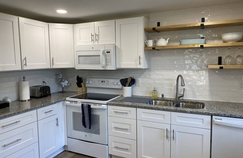 This cottage offers other conveniences such as: a contactless, private entry. Microwave, Keurig coffee maker, refrigerator, ice maker. Free Wi-Fi. A cable connected 50” Smart TV is in the living room and 36” TV’s in each bedroom to watch live programming or to view shows using your favorite streaming apps.