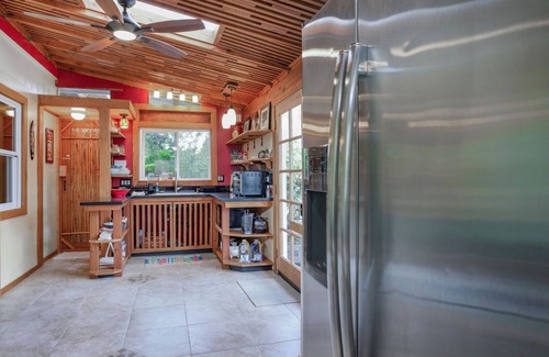 Prime location for a paradise packed Big Island experience! Enjoy peaceful, relaxing nights in Seaview Estates, a quiet place for 1, a romantic getaway or perfect for the entire family. This luxurious garden Ohana unit has a private entrance, one bedroom with two deluxe queen beds, and a queen sofa sleeper in the living room, with high-powered ceiling fans throughout and ocean breezes. Enjoy an amazing large outdoor dream shower, a smart tv, dine indoors or private outdoor dining in a lush private Zen Garden. Explore nearby Kehena Beach only a 5-minute drive, Uncle Roberts is 8 minutes and enjoy the Wednesday night farmer's market with the local Hawaiian band, dancing and great food, as well as the Saturday morning Kaimu Farmer's Market. Enjoy walks in the neighborhood, nearby hiking or a night sky perfect for stargazing. Make sure to visit Volcanoe's National Park to see the glow. Complimentary coffee and tea, drinking water, and fruit provided when in season, such as apple bananas, white pineapple and papaya!