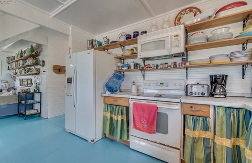Much of the furniture in the cottage was hand crafted out of salvaged material from local ship wrecks and the artwork throughout was done by Michael Cashmore Hingley, whose artwork is featured on numerous buildings throughout Spanish Wells. The cottage is appointed with all of the needed amenities; broad band wireless internet access, cable TV, flat screen TVs, washer, dryer, microwave, dishwasher, stove, oven, refrigerator with ice dispenser/water and six- zone climate control for ultimate comfort throughout the entire cottage.