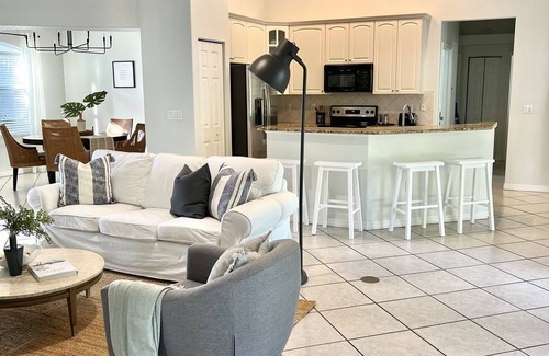 This house has about 2,000 sqf located in the popular Palma Sola Pines area, 7 miles away from beautiful Anna Maria Island, less than 9 miles to Bradenton beach and a walking distance to a beautiful Palma Sola Botanical Park and Robinson Preserve. It is situated between two beautiful and famous places such as Siesta Key Beach and St. Petersburg. This villa offers 4 bedrooms and 2 full bathrooms. This open floor plan allows for great gatherings - you will be able to cook a homemade meal while having a peak on foosball table tournament, a good TV show or even sneak peaking on those who are busy relaxing in the sun. The large dining table can seat up to 8 people. We did not forget about the little ones – a high-chair for the baby to comfortably enjoy the meal. Kitchen is fully equipped in small appliances such as slow cooker, toaster, coffee maker, sandwich grill, waffle maker and Ninja blender. To entertain your stay we provided a foosball table, plenty of board games and outdoor toys. For your beach trips there is a beach wagon filled with beach chairs, sun umbrella, picnic blanket and beach toys.