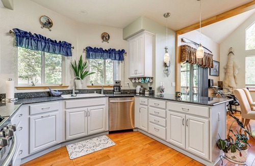 INDOOR HIGHLIGHTS: 2 floors w/ open layout, washer/dryer, fireplace, board games, Smart TVs, en-suite bathroom w/ jetted tub & walk-in shower, dining table