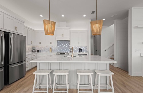 Bright, airy interiors are accented with coastal décor and designed for groups to gather and enjoy time together. Two spacious living rooms, two wet bars, and a fully stocked kitchen make hosting a breeze.