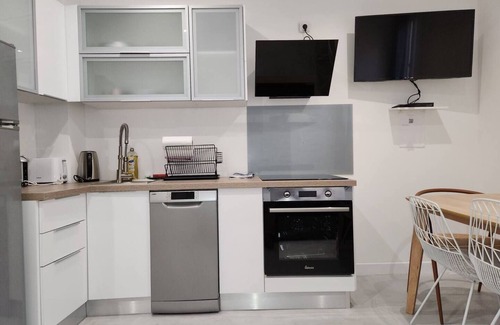 This 2-bedroom, 1-bathroom rental features a living room and a desk. Connect to the free WiFi, or get cozy in front of the cable/satellite TV. Bathroom amenities include a hair dryer, towels, and toilet paper. Prepare a home-cooked meal in the kitchen, complete with an oven, a stovetop, and a refrigerator, as well as a coffee maker, an electric kettle, and a microwave. And you can even travel light because you'll have access to laundry facilities. Other amenities include bed sheets, an ironing board, heating, and a desk chair.