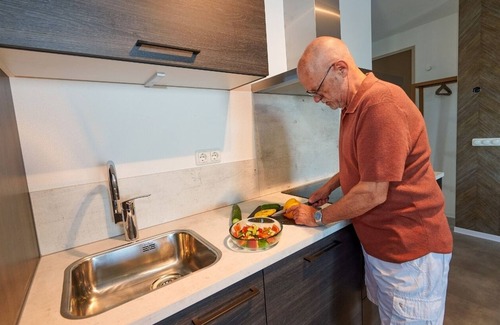 All the beds in the accommodation are already made and 1 set of bath towels (1 large and 1 small towel) are included per bed. In the kitchen, a kitchen towel set is at your disposal. A bathmat lies ready in the bathroom.