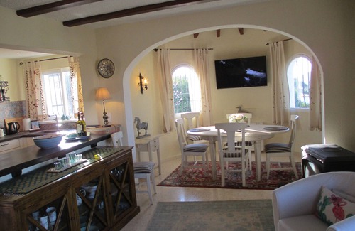 Our Villa Montebello, completely renovated in the spring of 2018 and equipped to a very high standard, lies on a gentle hill above the village of Benidoleig in the villa settlement Aldea de las Cuevas, which owes its name to the "Cueva de las Calaveres" cave at the foot of the mountain, an imposing cave a rock water source that supplies the region with clean drinking water.