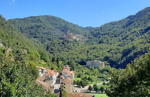 This property in an ancient stone house is in the historic centre of Pigna, one of the several medieval villages of the Nervia valley. It has sun all the year being south faced. The apartment has beautiful vaulted ceilings, a panoramic balcony where you can have lunch/dinner, sunbathe or just enjoy the view of the beautiful nature of the Nervia valley and a terrace on the other side of the house. Beside the balcony there is the kitchen with a dinner table and next a small bathroom with shower. The living room has a sofa bed, an armchair, a fireplace and a flat TV where you can watch foreign channels. Upstairs under a high wooden ceilings there is a double bedroom, a small bedroom with bunk beds both and a bathroom with shower. The apartment has all modern appliances, kitchen utensils and centralized heating. Towels and bed sheets are provided as well as free wifi Internet. The historic centre of Pigna is only accessible on foot, but parking is just 150 meters away. Shops and restaurants are a 2-3 minutes walk from the apartment.