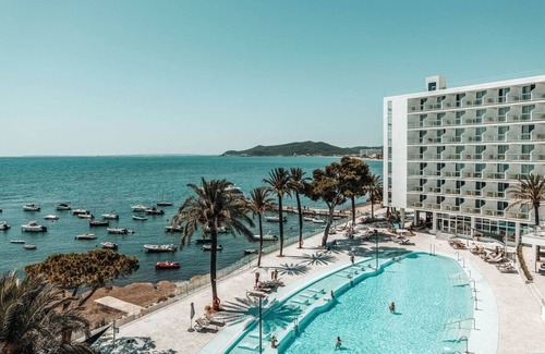 Lie back in your King size bed at sunset to enjoy views of the sea, take a relaxing bath in the jacuzzi after a long day at the beach or enjoy a cocktail at the exclusive terrace, the Upper Level. The Ibiza Twiins is an all-inclusive resort with multiple pools, patios, restaurants, and direct beach access. The suite is 720 square feet. The rate here is for two adult guests. Guests at the Twiins can also use the resort facilities at Sirenis Club Aura and Sirenis Seaview, for free.