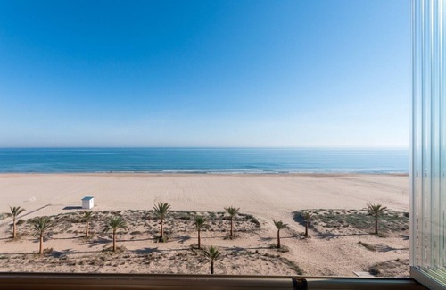 Beachfront Gandia beach. BERMUDAS is a privately owned Luxury Seafront apartment situated on the promenade of beachfront Gandia Beach. The apartment is on the 7th floor so you have a wonderful view of the whole length of the beach. The promenade and beach are quite spectacular. The resort has direct access to the sandy beach, so you won’t have to cross any road. The apartment comprises 3 bedrooms, The Main room with access to the huge 15 m 2 glazed balcony, which faces the sea, two twin rooms with a view to the swimming pool, 2 bathrooms, both of which have showers, WC’s and wash-hand basins. In the lounge there is a settee, plus other tables and chairs. Satelitte T.V. Plama .D.V.D The apartment has a lift. The building has a swimming pool, tennis court and paddel a large terrace suitable for children to play for and sunbathing all the complex is renew. Now with AIR-CONDITIONING AND CENTRAL HEATING, and your entertainment, WIFI free of charge.