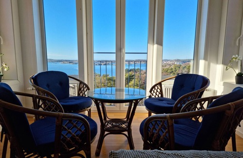 Welcome to this modern and spacious house built in 2017, located on a rocky plateau in Ellös. From here, you can enjoy breathtaking panoramic views of the sea, archipelago, and harbour – a place to relax from morning until evening. The house has two floors and accommodates up to 10 guests (6+4 beds) distributed across three bedrooms and additional sleeping spaces in sofa beds. Bright social areas, two bathrooms with showers, two kitchens, and a generous wrap-around terrace make this an ideal home for both families and friends.The interior is stylish and functional. The main floor kitchen is fully equipped with a stove, oven, dishwasher, microwave, fridge/freezer, and dining area. From here you have direct access to the terrace with sun all day. On the upper floor you will find another small kitchen, a living room with sofa bed and TV, and stunning sea views. For your convenience, the house also has a washing machine and a travel cot for babies. Outdoors you can enjoy barbecues, the sea breeze, and magical sunsets over Bohuslän. For extra relaxation, a wood-fired hot tub is available for rent.Things to do in Ellös and the surrounding areaEllös offers everything you may want during your holiday: restaurants, a fishmonger, bakery, kiosk, gym, and small shops. There are two beaches – a family-friendly sandy beach with jetties, floating platform, and crab fishing, as well as a natural beach where dogs are welcome. Nearby you will also find a golf course, hiking trails through varied landscapes, and charming fishing villages and car-free islands. From Ellös, it is only a short drive to the ferry terminal in Tuvesvik with departures to Gullholmen and Käringön – two of Bohuslän’s gems.For day trips, you can visit Töllås sheep farm with its café, Göksäter “Orust’s own Ullared” shopping destination, or Tavlebords Honey Farm with a country store and café.Good to know about this accommodation• Final cleaning is mandatory and costs 2,500 SEK/stay.• Electricity is included from May 1 – September 30. Other months: 3 SEK/kWh.• Bed linen and towels can be rented: 190 SEK/person and 60 SEK/person.• A deposit of 3,000 SEK will be reserved on your card upon arrival. The amount will be released within one week after departure, provided the house is left in approved condition after inspection.• Dogs are welcome.• Maximum 10 persons (including children) may stay in the house.• It is not possible to rent only one of the floors.• Smoking and electric car charging are not allowed.