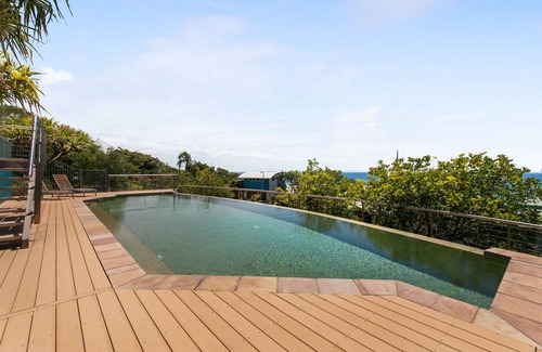 The units face north and have a large pool and entertainment area - the views are the best at Point Lookout and it is possible to watch the migration of Humpback Whales (June to November) from each unit. Features: Two bedroom two bathroom units with decks on two levels, vergola roofed decks which can be opened or closed depending on the weather,dishwasher, oven and microwave, colour TV and DVD, washing machine and dryer, ceiling fans throughout, screened doors, bbq on deck and undercover parking. Swimming pool and timber entertainment area.