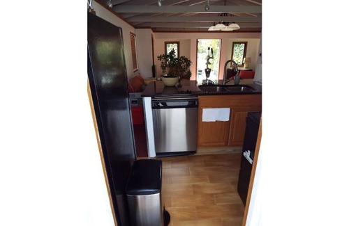 It was designed and completed in March of 2016 with everything new including: stove, refrigerator, double sink, dishwasher, garbage disposal, granite counter/bar with 1950's swivel stools, complete with a new central air conditioning/heating system including vent to the bathroom thermostat controlled by the guest in residence. With a totally brand-new bathroom - shower - with all fixtures by Moen. Indeed, even all the blinds are brand new. The stackable washer/dryer (used, but excellent) is off the back deck, a few steps from the kitchen back door housed in its own built-in add-on. There are two closets with plenty of hanging/storage space; one next to a granite topped, two large drawer dresser for your convenience. There is a wall mounted flat screen, Smart Television and Wi-Fi via Spectrum/BrightHouse.