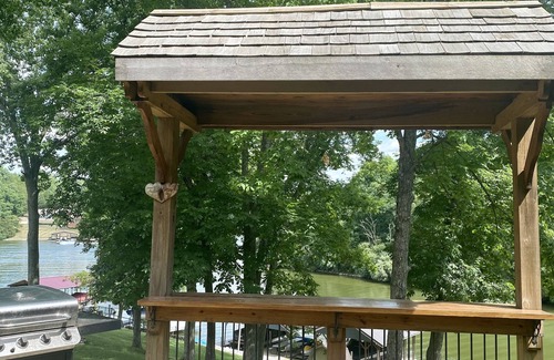 The dock has plenty of room to tie off a boat and has a 25 x 12 foot covered bar area with hi-speed WiFi and smart TV.