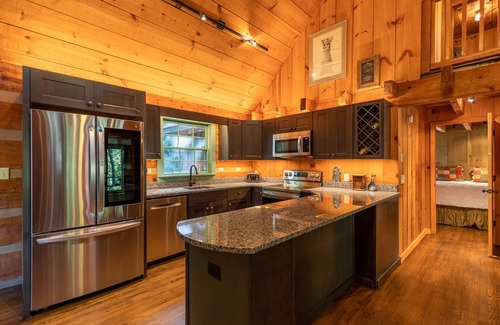Paradise Found is brought to you by the creator of The Dog House and A River Runs Through It, which is located through the woods next door. This home has been lovingly remodeled to be the perfect couples retreat!