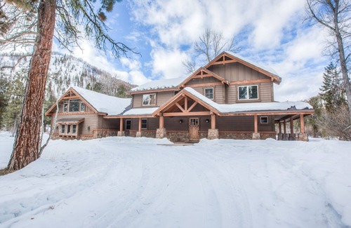 If you are looking to escape the hustle and bustle of city life, the Boise River Retreat is a beautiful luxury vacation home located in Featherville, Idaho, just a two hour drive between the Boise Airport and the Sun Valley Airport, on the banks of the Boise River. Listen to the sounds of the river just outside your window, watch the quiet starry nights, or enjoy the silent snow falling. This remote vacation home is surrounded by 15,000 square feet of rolling lawn up to the river's edge. After a day of fishing, boating, river rafting or motorcycle riding, enjoy cool summer breezes at our mountain vacation home while roasting marshmallows in the outdoor firepit or head to the natural hot springs just 5 miles downriver. When winter snow covers the ground, fire up your snowmobiles and hit the gateway to the Trinities, 5 minutes from our door. No Matter the season, this mountain vacation rental is perfect for your group. Complete privacy for a small group or a family reunion.