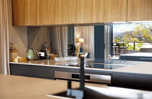 * Open plan living space features a smart TV, comfortable lounge, ceiling fan, waterviews and a combustion fireplace