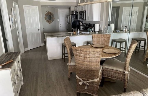 Book now as the beaches are breathtakingly clean, water is crystal clear and you can see dolphins from the balcony. The unit is waiting for you to create great family memories. PLEASE BE SURE TO CONFIRM RESERVATION WITH OWNER UPON FINAL DETAILS! Located on the third floor allows you to enjoy the balcony while supervising children or guests in the indoor/outdoor pool, or on the beach. Our location is close to Adventure Island and Bubba's Seafood, just walk across the street! Sorry, no smoking or pets inside of the unit. Beautifully decorated, our unit offers you luxury and comfort directly on the beach. There is a grilling and seating area for you to relax and enjoy dinner while listening to the waves at sunset!
